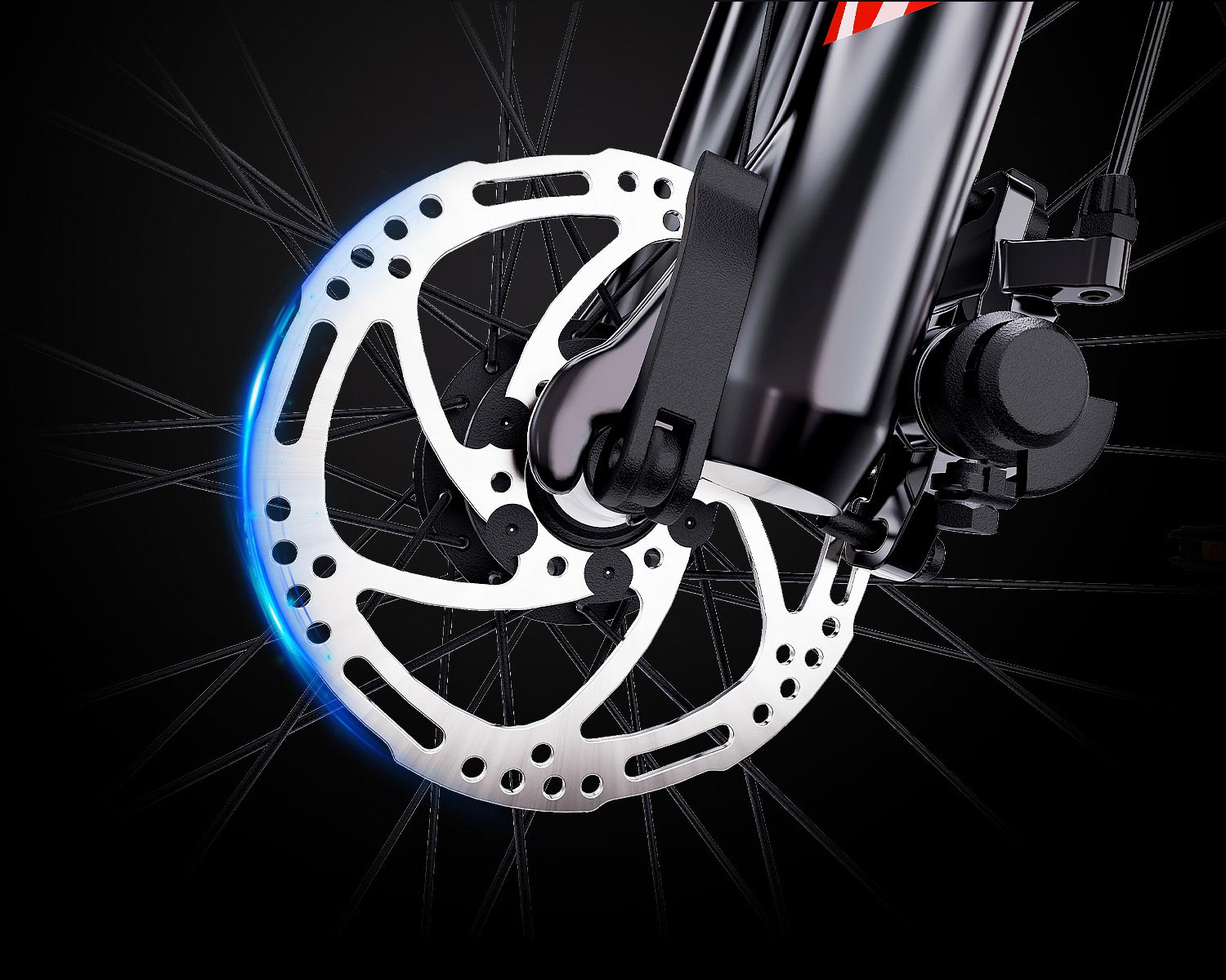 Ride with dependable stopping power. Front and rear mechanical disc brakes offer reliable performance in all weather conditions, improving safety and reducing brake wear over time.