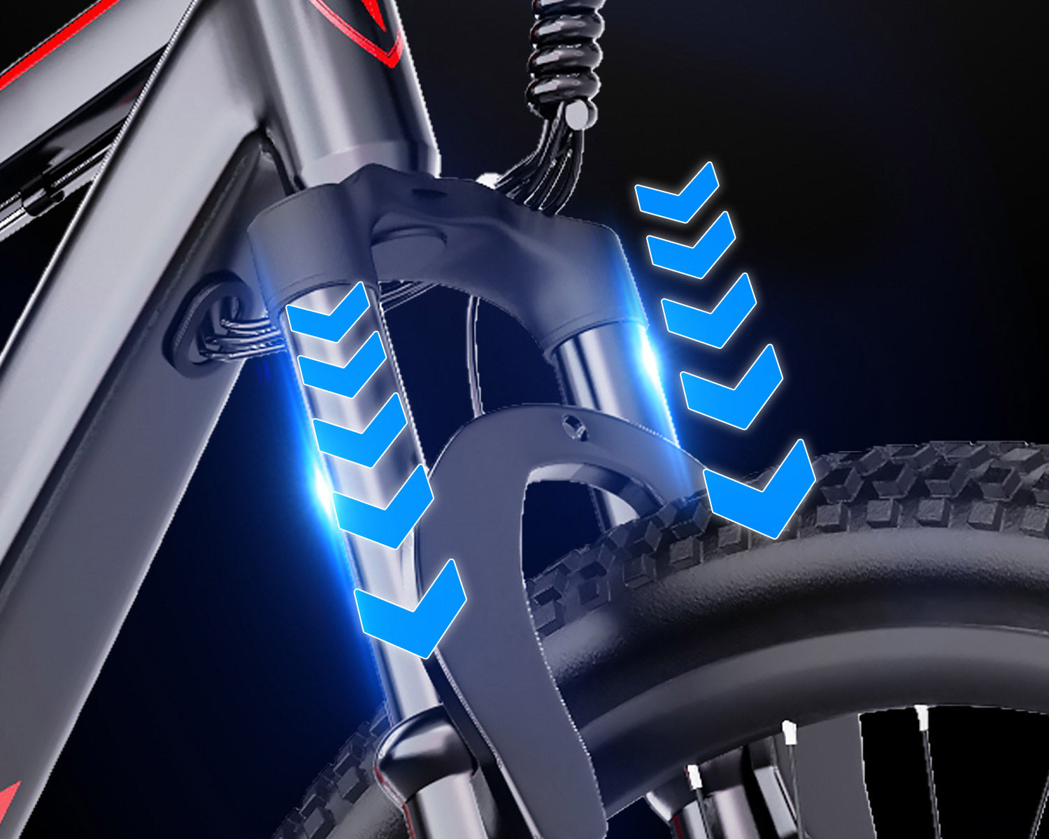 Conquer bumps and rough paths. The durable front suspension fork absorbs shocks and vibrations, delivering smoother, more stable rides on both pavement and light trails.